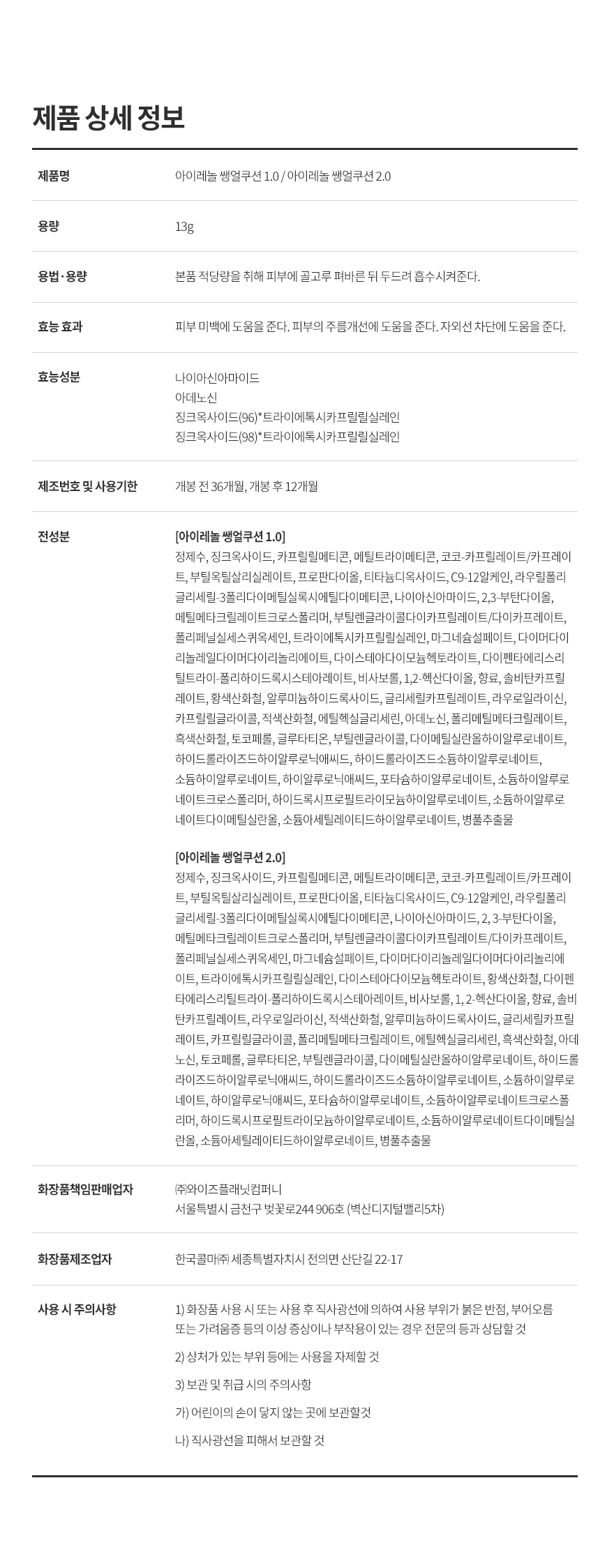 아이레놀 쌩얼쿠션 1.0 (2028년 11월까지)