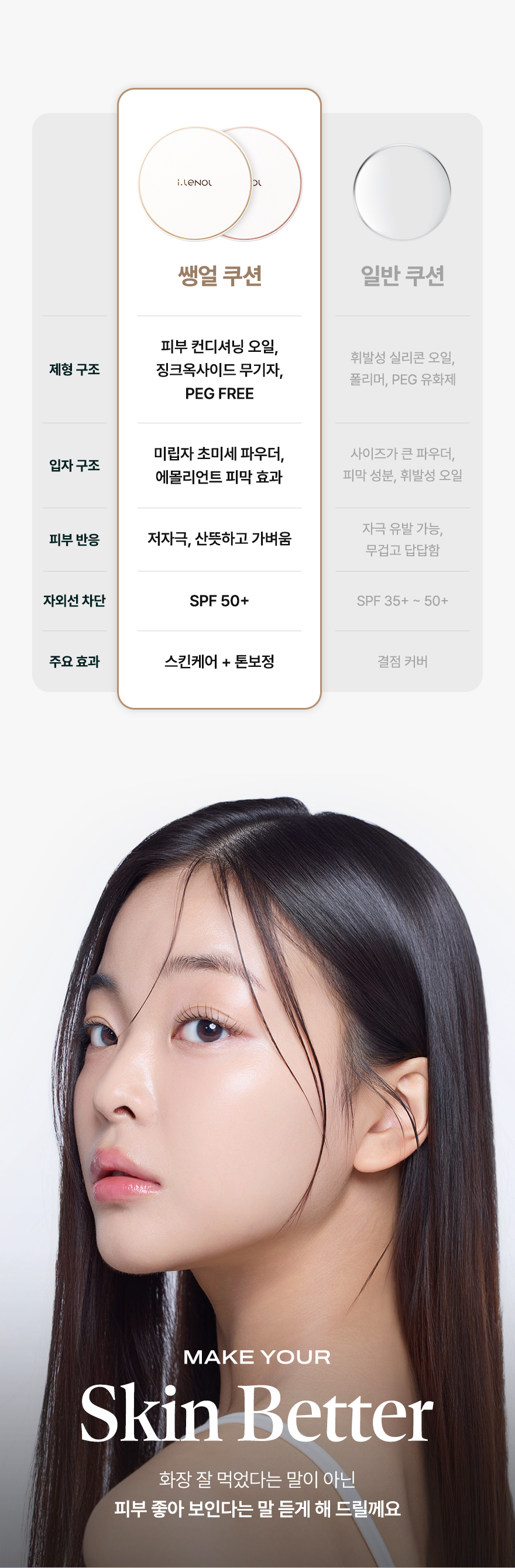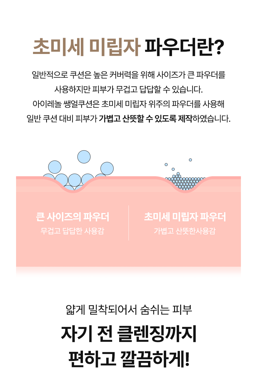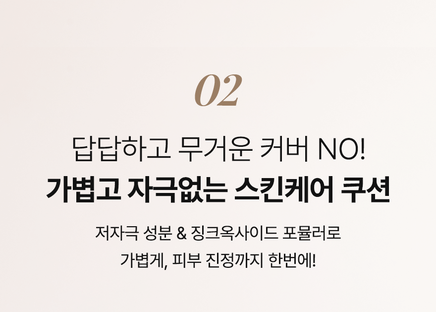 POINT 2. 답답하고 무겁지않게! 가볍고 자극없는 '스킨케어 쿠션'