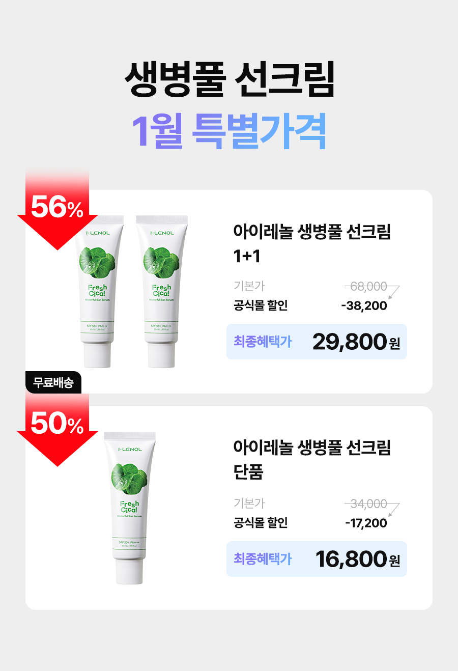 아이레놀 생병풀 트러블 진정 선세럼 50ml (SPF 50+, PA++++)